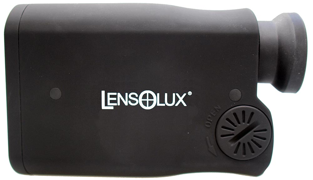 LENSOLUX 8x30 laser rangefinder LEM1500, 8x magnification, 30 mm objective lens diameter, measures distances 5-1500 m, rubber coated aluminum housing, in nylon bag with accessories.