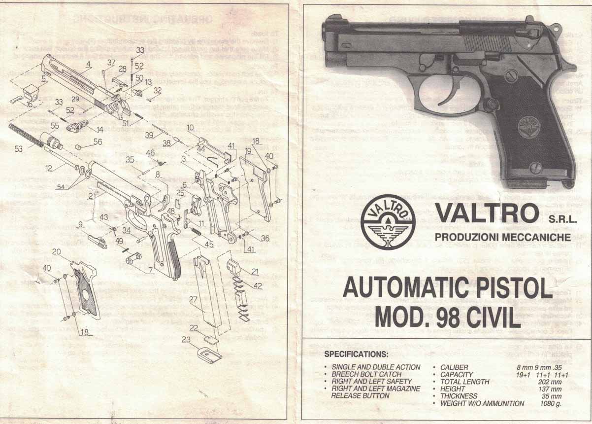 we carry a large stock of replacement parts for the VALTRO blank gun model 98 CIVIL. Please let us know the required parts by using the drawing or parts-list.